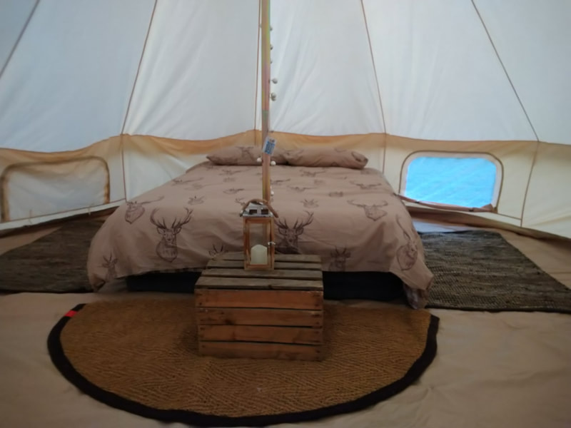 As an alternative to traditional camping, Pitched Perfect Events are on hand to supply, pitch and kit out a Bell tent in the camping field.
